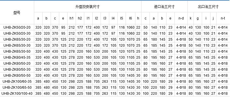 UHB-ZK系列砂漿泵為懸臂式單級(jí)、單吸離心泵,其過流部件采用鋼襯超高分子量聚乙烯結(jié)構(gòu),具有較強(qiáng)的耐腐蝕性和卓越的耐磨性?奢斔蜐舛80%以下的硫酸、50%以下的硝酸、鹽酸等各類酸、堿、鹽的料漿,稀貴金屬冶煉行業(yè)的各種腐蝕性砂漿及食品、酒行業(yè)中的各種混合型介質(zhì)。 適用溫度:-20°C ~ 80°C