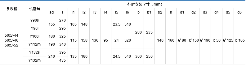 3G,3GR50x2型臥式泵外形及安裝尺寸